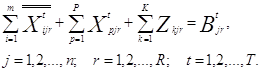 Спрос j-го потребителя в r-м нефтепродукте в период t должен удовлетворяться за счет непосредственных поставок от всех пунктов производства, а также от всех нефтебаз и их филиалов.