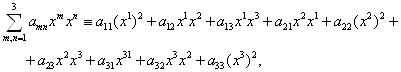С другой стороны, однородная квадратичная функция трех переменных имеет вид