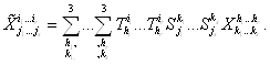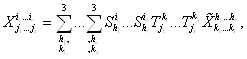 - это индексы суммирования, они входят в правую часть (3.1) парами: один раз в качестве верхнего индекса и один раз в качестве нижнего индекса, один раз в S-матрице либо в T-матрице и второй раз среди индексов в компонентах массива