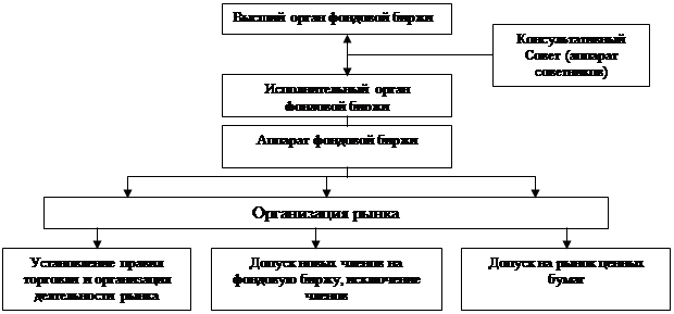 Поэтому фондовая биржа рассматривается как саморегулируемая организация, действующая на принципах биржевого самоуправления. Это проявляется в том, что в рамках действующего законодательства биржа сама принимает решение об организации своего управления, что находит отражение в ее уставе (34,261)