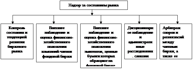 - надзор за членами биржи (с позиции их финансовой устойчивости, безопасного ведения бизнеса и соблюдения этики фондового рынка).