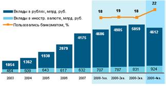 Колебания на финансовом рынке в IV квартале 2008 года привели к тому, что часть рублёвых вкладов россиянами переводилось в валютные депозиты, порядка 6% вкладчиков и вовсе предпочли снять деньги. С наступлением 2009 года ситуация несколько стабилизировалась, жители страны перестали закрывать банковские счета.