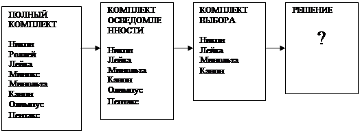 Рис.5. Последовательность комплектов, задействованных в процессе принятия решения о покупке.