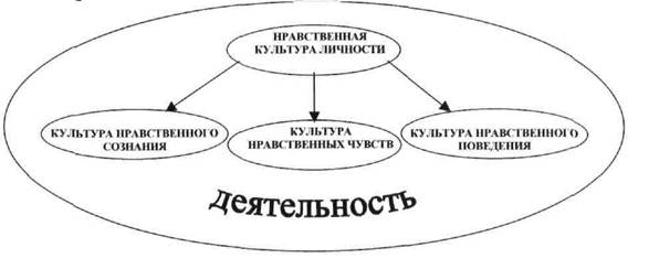 Таким образом, мы в своей работе под нравственной культурой личности будем понимать реализацию культуры нравственного сознания и нравственных чувств в деятельности, что приводит к формированию культуры нравственного поведения (рис. 1.1)