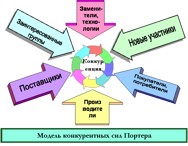 В классической модели конкурентной среды предприятия М. Портера на рисунке 1.1, значение и сила влияния каждого из факторов конкуренции меняется от рынка к рынку и определяет цены, издержки, размеры капиталовложений в производство и сбыт продукции и в конечном счёте прибыльности бизнеса. Поставщики и покупатели, стараясь извлечь собственную выгоду, снижают прибыль фирмы. Конкуренция внутри отрасли также снижает прибыль фирмы, так как для поддержания конкурентных преимуществ, приходится увеличивать издержки (расходы на рекламу, организацию сбыта, и др.) или терять прибыль за счёт снижения цен.