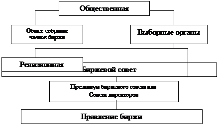 В соответствии с российскими законодательными документами фондовые биржи создаются в форме некоммерческого партнерства. Поэтому ее органы управления делятся на общественную и стационарную структуры.