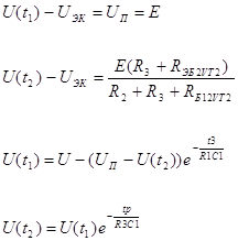 Решая эту систему получим выражение для амплитуды длительности импульса и периода через параметры схемы.