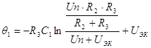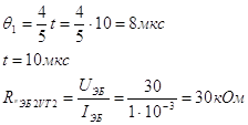 Выбираем транзистор VT1, исходя из его способностей пропустить ток заряда конденсатора С1 за время q2 и выбираем двухбазовый диод Uc1 и пропускаем ток падение напряжения которого на резисторе R3 открывает тиристор VT4. Выбираем тиристор VT4, напряжение VБ12 которого меньше 30B и время отпертого состояния которого соответствует времени q1.