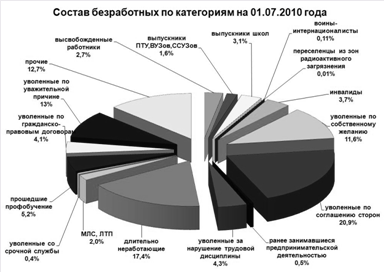 Рисунок 2. Состав безработных по категориям на 01.07.2010 года