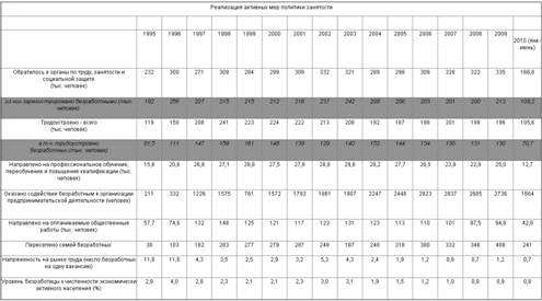 Таблица 1. Реализация активных мер политики занятости