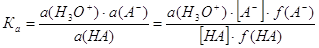 Важно заметить, что константы диссоциации, определенные этим способом, отличаются от констант, приводимых в таблицах, поскольку последние включают активности, в то время как первые – концентрации. Так, если мы запишем выражение для константы диссоциации в более точном виде, то получим