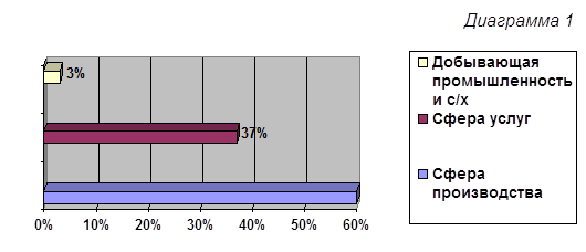 Почти все крупнейшие ТНК по национальной принадлежности относятся к «триаде» – трем экономическим центрам: США, странам ЕС и Японии. В последние годы активно развивают свою деятельность на мировом рынке транснациональные корпорации новых индустриальных стран. Отраслевая структура ТНК достаточно широка. 60% международных компаний заняты в сфере производства (прежде всего они специализируются на электронике, автомобилестроении, химической и фармацевтической промышленности), 37% - в сфере услуг и 3% - в добывающей промышленности и сельском хозяйстве (см. диаграмму 1).