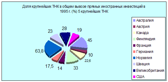 Из 500 самых мощных международных компаний 85 контролируют 70% всех заграничных инвестиций. Эти 500 гигантов реализуют 80% всей произведенной электроники и химии, 95 % фармацевтики, 76% продукции машиностроения.