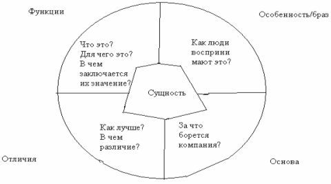 В приложении 1.1 изображена модель аспектов бренда по Бернетту. Бернетт выделяет следующие аспекты: особенность / образ, функции, отличия, основа. Для того чтобы эффективно управлять аспектами бренда, как считал Бернетт, надо, прежде всего, понимать сущность бренда, поэтому в центре его модели поставлено понятие «сущность».