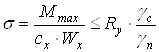 Перевірку міцності прийнятого перерізу виконуємо за формулою: