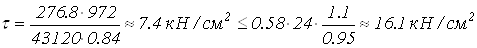 Міцність за дотичними напруженнями визначаємо за формулою 11 (1):