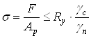 За формулою 147 (1) визначаємо напруження стиску опорної бази: