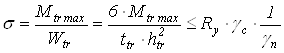 За формулою 158 (1) проводимо перевірку міцності траверси на згин: