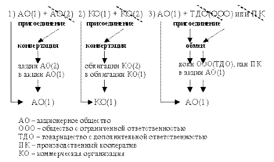 Это означает, что невозможен случай присоединения одной коммерческой организации к акционерному обществу без конвертации ценных бумаг или обмена долей коммерческой организации в акции (или иные ценные бумаги) общества, к которому осуществляется присоединение. К примеру, в п. 2 ст. 17 Закона "Об акционерных обществах" закреплено, что в договоре присоединения обязательно должен быть определен порядок конвертации акций присоединяемого АО в акции и (или) иные ценные бумаги АО, к которому осуществляется присоединение. Закон, к сожалению, не рассматривает иные случаи присоединений коммерческих организаций к акционерному обществу. Однако, как изложено выше, другие способы присоединения коммерческих организаций к акционерному обществу находят свое отражение в Стандартах эмиссии при реорганизации коммерческих организаций и являются обязательными для исполнения в установленном порядке.