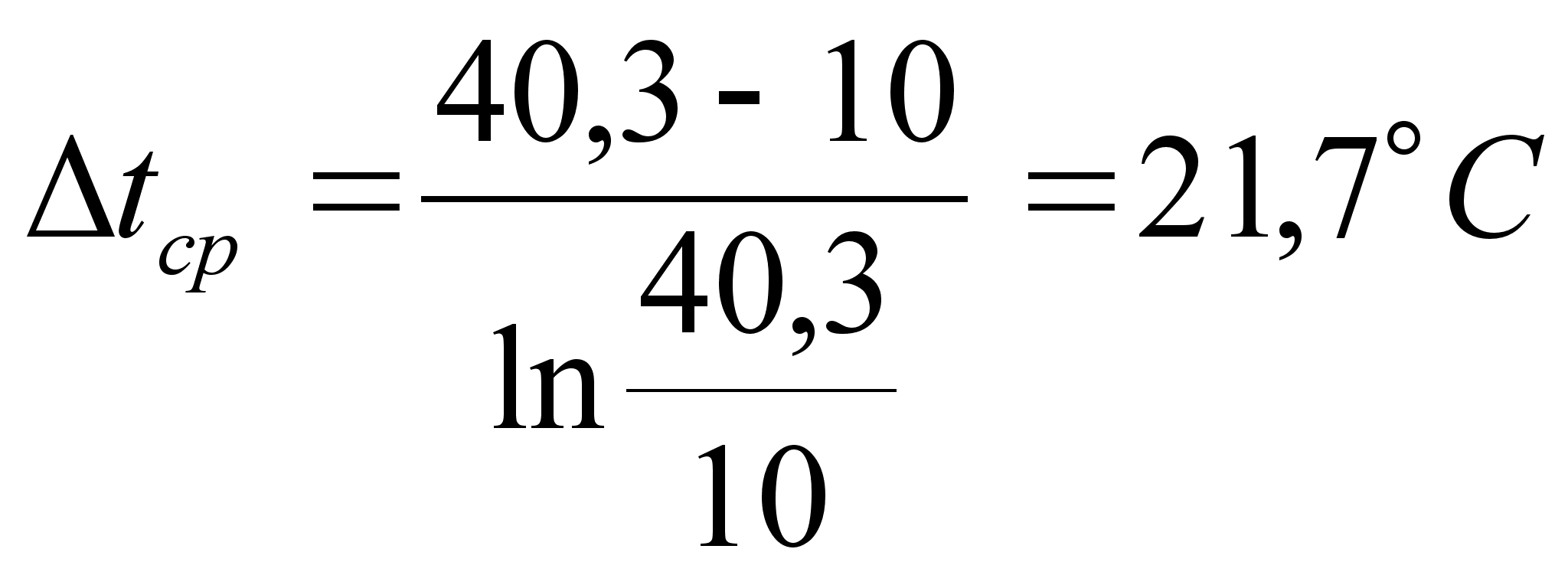 Пусть охлаждающая вода в теплообменнике нагревается с 20С до 25С. Тогда средняя разность температур: