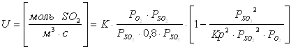 В Р.И.В. Проводят окисление SO2. Объем реакционной зоны 150 м2. Объемный расход смеси 50000 м3/г. Состав исходной смеси SO2 – 0,1; O2 – 0,11; SO3 – 0,01; остальное – азот. Давление в реакторе Р=1,5 атм.