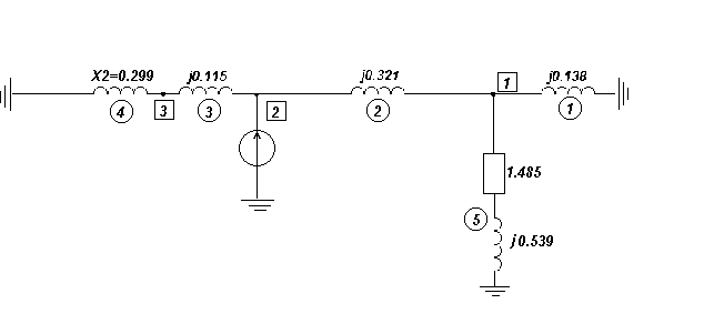 Схема для расчёта проводимостей аварийного режима представлена на рисунке 10.