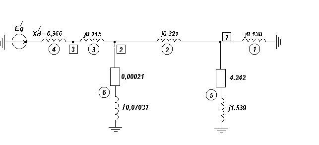 Рисунок 11 – Схема замещения послеаварийного режима.