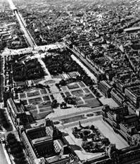 В период абсолютистской монархии (XVII в.) в Париже создавались великолепные архитектурные сооружения, осью которых стала Сена и почти параллельный ей главный правобережный диаметр Парижа: Лувр - Тюильри - площадь Конкорд (Согласия) - Елисейские поля - площадь Этуаль (Звезды, ныне Шарля де Голля). Прямые проспекты и улицы (Елисейские поля, эспланада Инвалидов), построенные по единому плану площади с регулярной застройкой (Вогезов, Дофина), здания, сооруженные в классическом стиле (Пантеон, церковь Инвалидов и др.), а затем в стиле ампир (Триумфальная арка, церковь Мадлен), придали новый масштаб и облик средневековому прежде Парижу, который медленно освобождался от тесных запутанных улиц с хаотичной застройкой. В XVII в. французские короли ведут беспрерывные войны, постепенно расширяя территорию страны. Не прекращаются религиозные распри и военные столкновения внутри страны между враждующими группировками из верхушки дворянства , теснящимися вблизи трона. И поэтому строительство военных крепостей, и укрепление городов - длительное время одна из важных задач французского градостроительства. Втjрым важным направлением было сооружение многочисленных замков французской знати (вокруг Парижа). Наиболее крупные работы ведутся по созданию Версаля и парадных ансамблей Парижа. Огромный загородный дворцовый и парковый комплекс, построенный в Версале в середине XVII в. по проекту Ленотра, Мансара и др., стал видимым символом великолепия и роскоши французского королевского двора. Этот комплекс имел и важное градостроительное значение, дав новый масштаб и стандарт для сооружения городских ансамблей в Париже и в других столицах (Тюильри - Елисейские поля в Париже) и обширных открытых площадей (Кокорд, Тюильри в Париже), широких бульваров и улиц. В Версальском дворце, как и в сооруженных примерно в это же время новых блестящих зданиях Парижа, возобладал новый для Европы архитектурный стиль - классицизм, величественный стиль абсолютистксих монархий, новое «возрождение» античности.