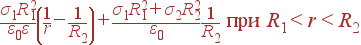 Задача. Имеются две концентрические заряженные сферы (σ1, R1 и σ2, R2). Найти Er(r), φ(r) и σ ', если пространство между сферами заполнено однородным диэлектриком с проницаемостью ε.