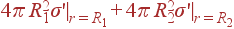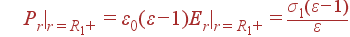 В точках разрыва ε(r) (на стыке двух диэлектриков) или qinside(r) (в момент "перехода" через заряженную сферу) соответствующая производная ε'(r) или qinside'(r) имеет разрыв. При этом поверхностный связанный заряд составляет: