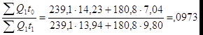 Измерение внутрипроизводственных факторов (внедрение новой техники и технологических процессов, улучшение организации труда и производства и т.д.) выражается в изменении уровней выработки на каждом производственном участке (q1:q0), а изменение структуры изучаемой совокупности - в изменении доли отдельных участков в общих затратах труда (dT1 : dT0).