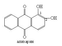 Окисленные антраценпроизводные различно относятся к щелочам. Антрахиноны, имеющие гидроксилы в a-положении, образуют феноляты только с гидроксидами щелочных металлов, так как a-гидроксилы образуют внутримолекулярную водородную связь с карбонильной группой (С=О), поэтому она менее реакционноспособна, чем гидроксигруппы в b-положении.