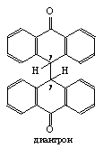 димеры – образуются при участии 2 мономеров. Чаще всего конденсация восстановленных форм (антранолов и антронов) происходит по кольцу В в g-положении с образованием диантранолов и диантронов. Антрахиноны могут конденсироваться по a- и b-положениям. Гомодимеры образуются в результате конденсации двух одинаковых мономеров, гетеросоединения – двух разных мономеров. Примером диантрона может быть сеннидин, гетероантрахинона – вассианин, выделенные из видов кассии.