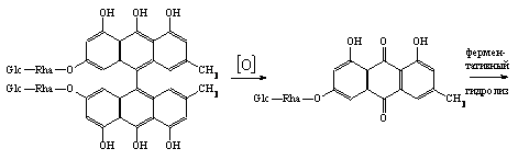 В свежей коре крушины преобладают восстановленные формы. При длительном хранении или нагревании сырья происходит их окисление и ферментативный гидролиз с образованием различных промежуточных продуктов.