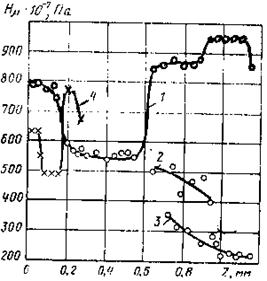 Микротвёрдость армко-железа Нm≈ 4000 мПа. Следует отметить, что фронт расплавлений выражен не чётко.