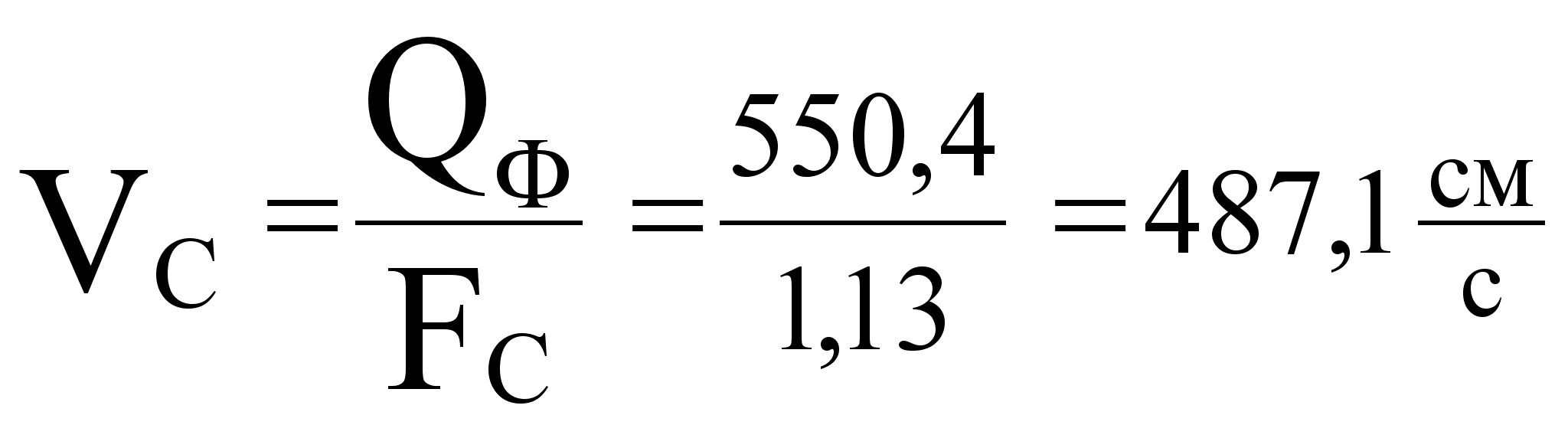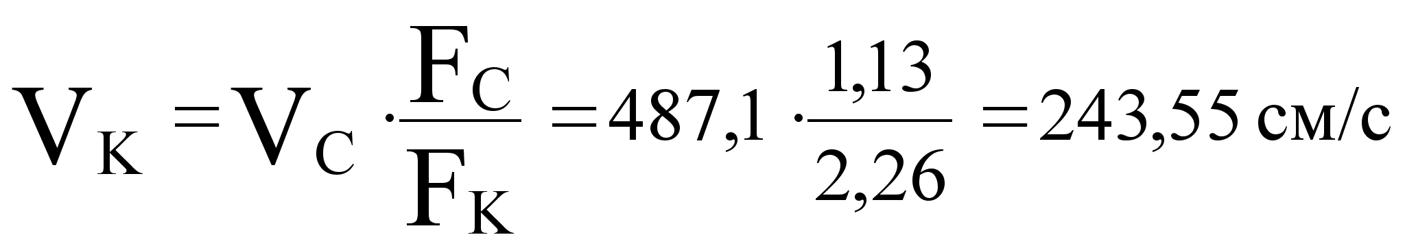 максимально допустимое значение табл.4 (5) Vk max = 495 см/c. Следовательно, условие Vk ≤ Vk max соблюдается.