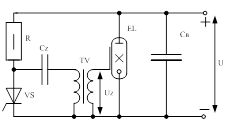 Величина ЭДС зависит от коэффициента трансформации и соотношения витков первичной и вторичной обмоток. Напряжение UZ, равное единицам или десяткам киловольт и снимаемое со вторичной обмотки трансформатора, подается на поджигающий электрод лампы, тем самым вызывая разряд накопительного конденсатора CB через лампу.