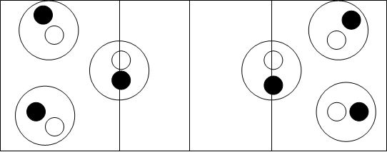 Подготовка: начертить три круга. В каждом кругу по три участника.