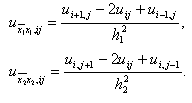 аппроксимирует дифференциальное выражение (4) со вторым порядком, т.е. Lhuij – Lu(xi1, xj2) = O(h21) + O(h22). Более того, для функций u(x1, x2), обладающих непрерывными шестыми производными, справедливо разложение