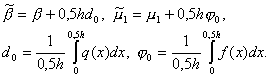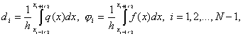 т.е. условия (8) выполнены. Условия (9) выполнены в силу того, что замена интегралов (6) значениями qi, fi соответствует приближенному вычислению этих интегралов по формуле прямоугольников с узлом в середине отрезка интегрирования.