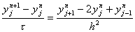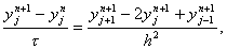 В случае нелинейных уравнений, когда заранее неизвестны пределы изменения функции k(u), избегают пользоваться явными схемами. Чисто неявная схема, линейная относительно yin+2, i = 1, 2,…, N – 1, имеет вид