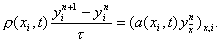 где ai = 0,5 (k(yni) + k(yni-1)). Эта схема абсолютно устойчива, имеет первый порядок аппроксимации по t и второй – по h. Решение yin+1, i = 1, 2,…, N – 1, находится методом прогонки. Заметим, что схему (29) можно записать в виде