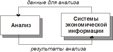 Система экономической информации связана с анализом двунаправленной связью. С одной стороны, анализ черпает данные из экономической информации, которая является отправной точкой для анализа. С другой стороны, в результате выполненного анализа возникает новая информация, используемая в дальнейшем, в частности, при планировании, управлении.