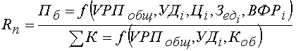 Аналогично осуществляется факторный анализ рентабельности инвестированного капитала. Балансовая сумма прибыли зависит от объема реализованной продукции (VРП), ее структуры (УДi), себестоимости (Зед), среднего уровня цен (Цi) и финансовых результатов от прочих видов деятельности, не связанных с реализацией продукции и услуг (ВФР).