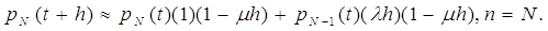 Прежде всего получим уравнение в конечных разностях для рn(t), т.е. для вероятности того, что в интервале времени t в системе находится n требований (клиентов). После этого при надлежащих условиях перейдем к пределам пи t®¥ и получим формулу для рn, соответстветствующих сиационарному режиму исследуемого процесса.