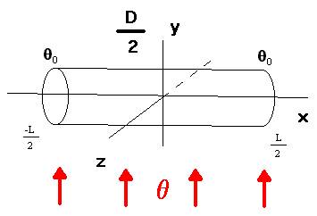 Тонкий цилиндрический стержень помещён в тепловой поток с постоянной температурой , на концах стержня поддерживается постоянная температура 0.