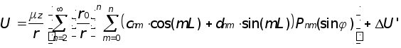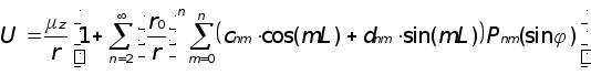 Uв = (mz/r)(r0/r)2(c20P20(sinj) + (c22cos(2L) + d22sin(2L))P22(sinj)),