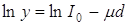 В случае однородности оптических свойств прослойки зависимость логарифма интенсивности прошедшего света от толщины прослойки будет линейной:
