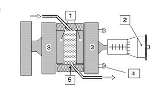 Щелевой зазор создавался между двумя плоско полированными стальными пластинами 1, которые с помощью микрометрического устройства 2 могли перемещаться и фиксироваться на заданном расстоянии. Полированные, обработанные по 14-му классу точности, стальные пластины закреплялись на латунных основаниях 3, в которых размещались установочные болты 4, позволявшие в случае необходимости устранять клиновидность щелевого зазора. Герметизация зазора осуществлялась боковыми и верхними резиновыми прокладками 5, покрытыми тонкой тефлоновой пленкой.