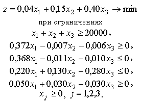 В качестве (минимизируемой) целевой функции выступает общая стоимость смеси, определяемая по формуле